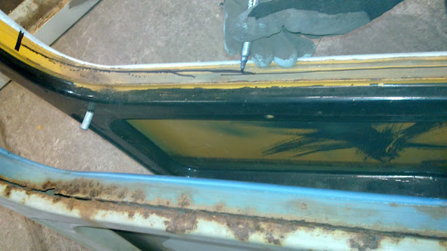 Next up was the door. It had much rust along the bottom side and it was basically the paint that hold it together.